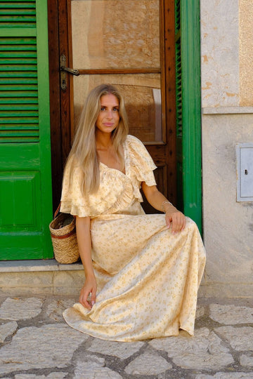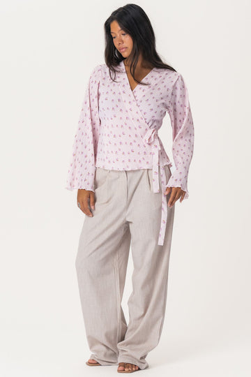 OfeliaIC Long Wrap Dress - Pink Flower Blush Print