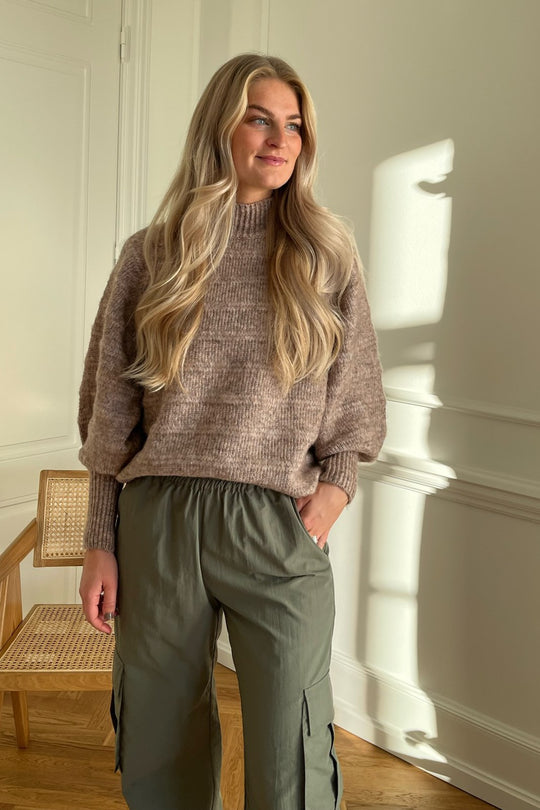 ONLCelina Life LS High Pullover Knit - Chestnut W. Melange