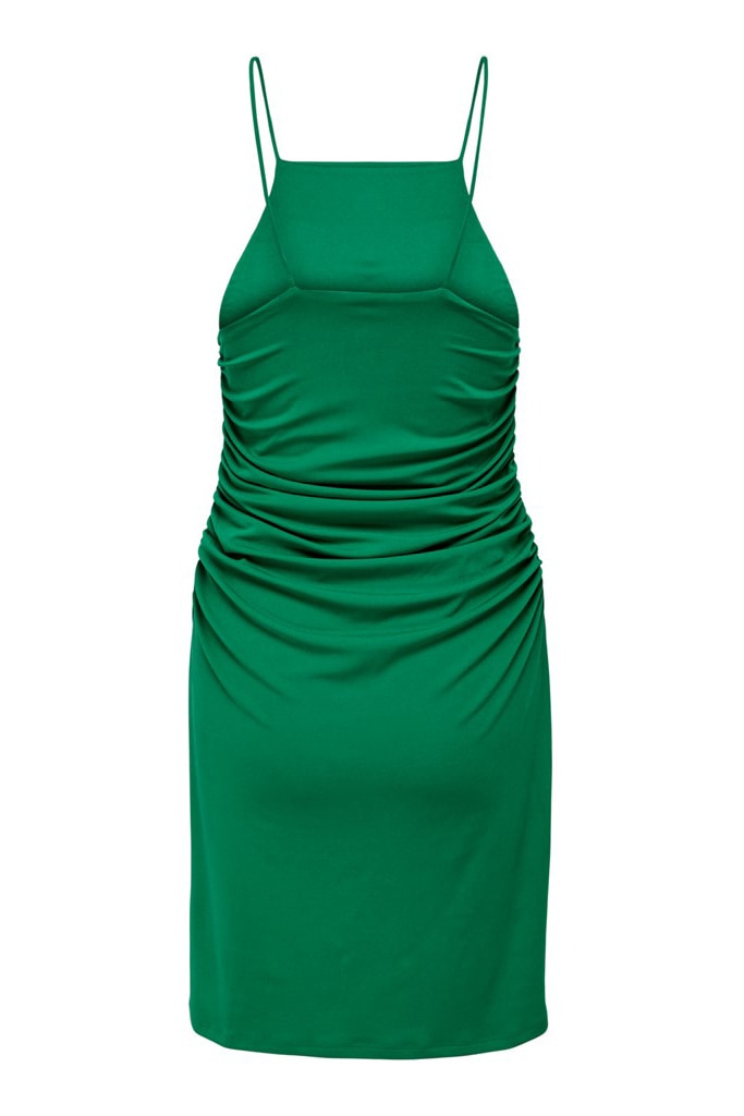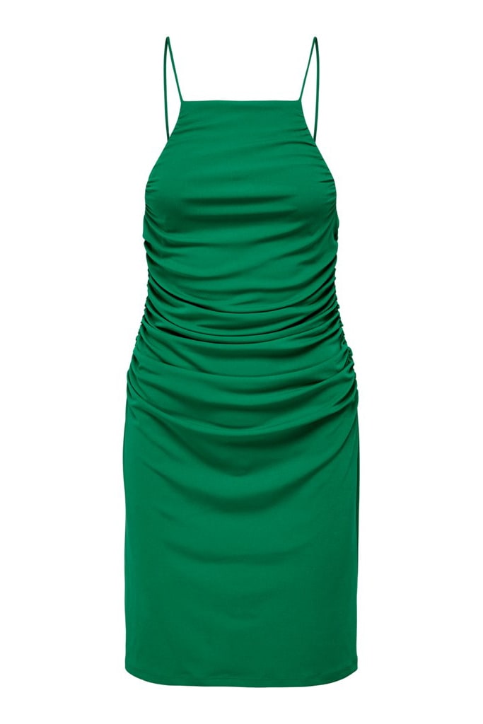 The perfect dark green dress with draping and a slim fit with thin straps.