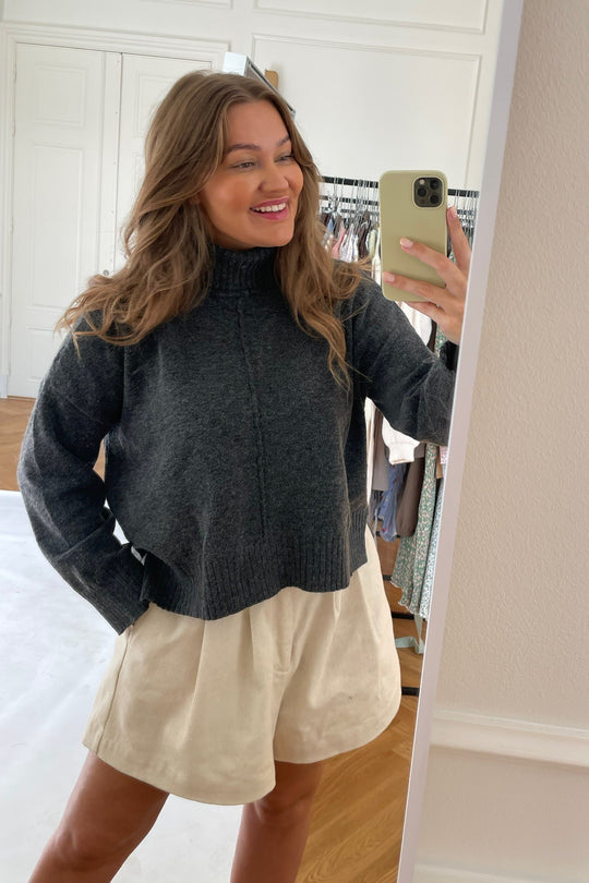 NMIan LS Roll Neck Knit - Dark Grey Melange