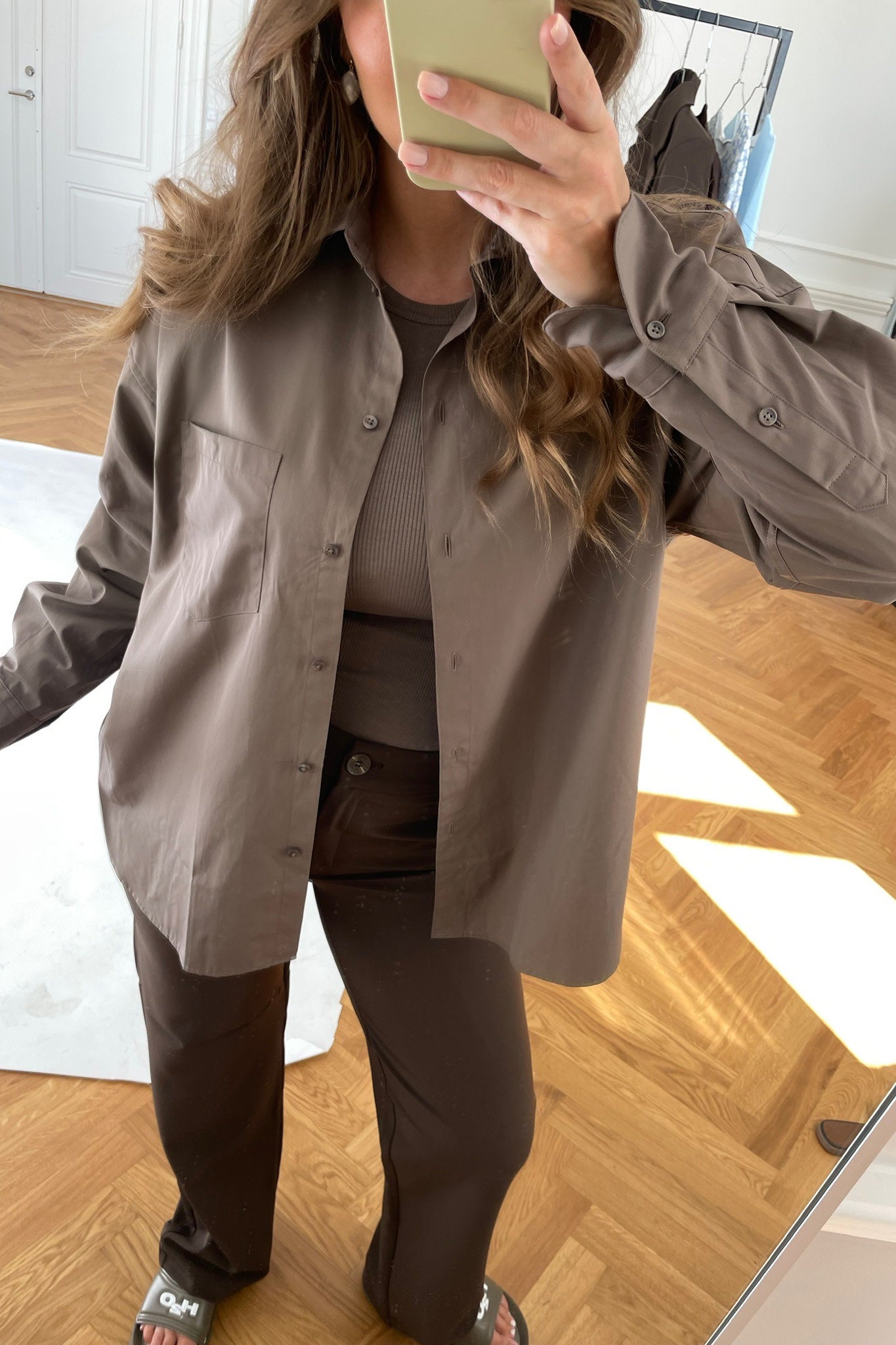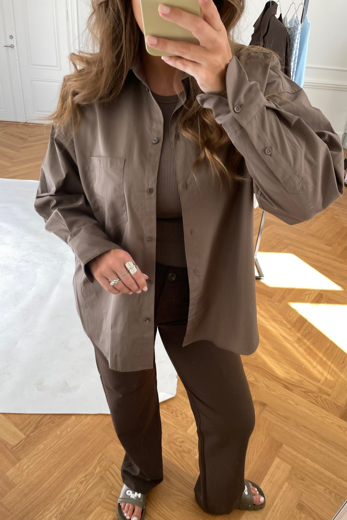 Oversized, classic shirt in brown - perfect for your everyday wardrobe.