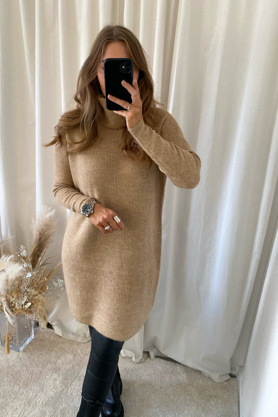 ONLJana LS Cowl Neck Dress Wool Knit - Indian Tan