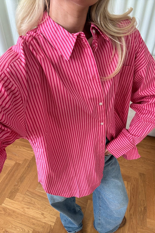 Oversized, classic shirt in pink with stripes - perfect for your everyday wardrobe.