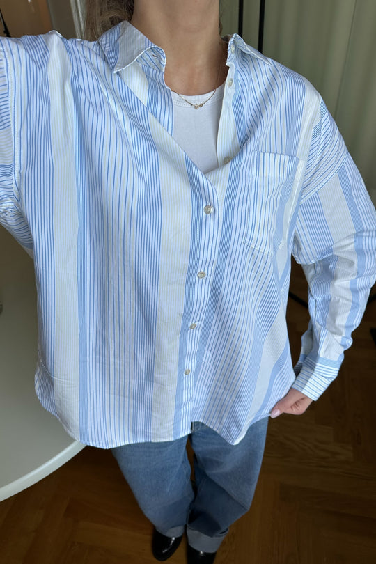 Oversized, classic striped shirt in blue and white - perfect for your everyday wardrobe.