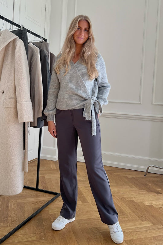 Basic pants in dark grey with pockets and elastic-band around the waist.