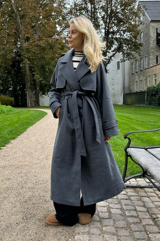 ONLMaisy Xlong Wool Life Trenchcoat - Dark Grey Melange