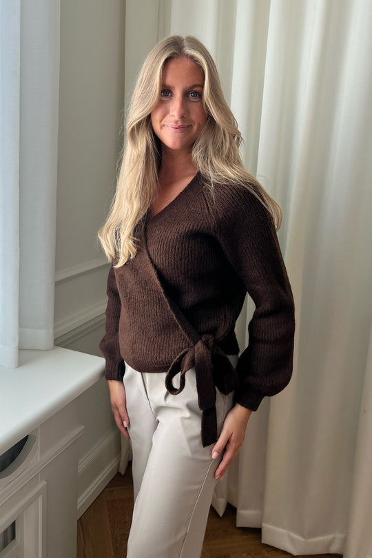 Beautiful wrap knit cardigan in brown - wear it with your favorite jeans.