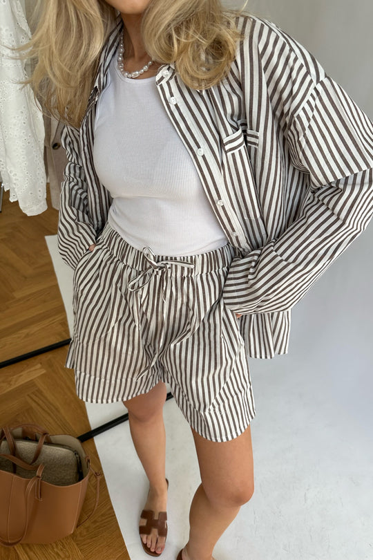 Cute shorts with stripes and a tie around the waist, match it with our Saga shirt.