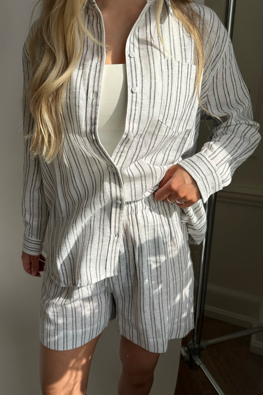ONLTokyo HW Linen Blend Stripe Shorts - Bright White Phantom